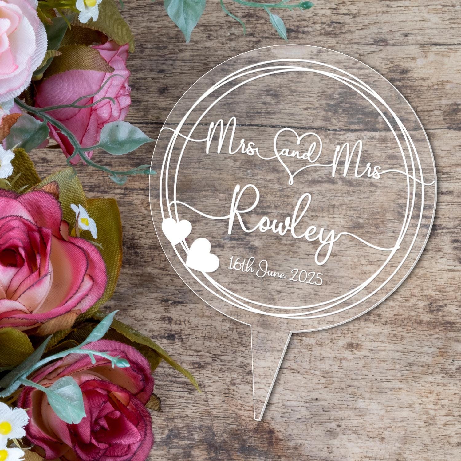 Personalised Clear Acrylic Cake Topper the Perfect Finishing Touch for your Wedding Cake! Create a Stunning Centrepiece for your Special Day!