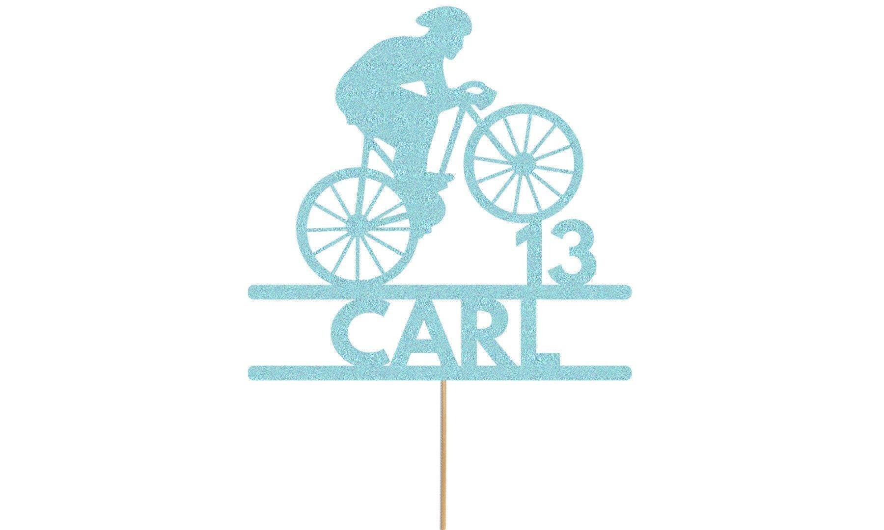 Personalized Glitter Bicycle Cake Topper: Cyclist Birthday Party Decor