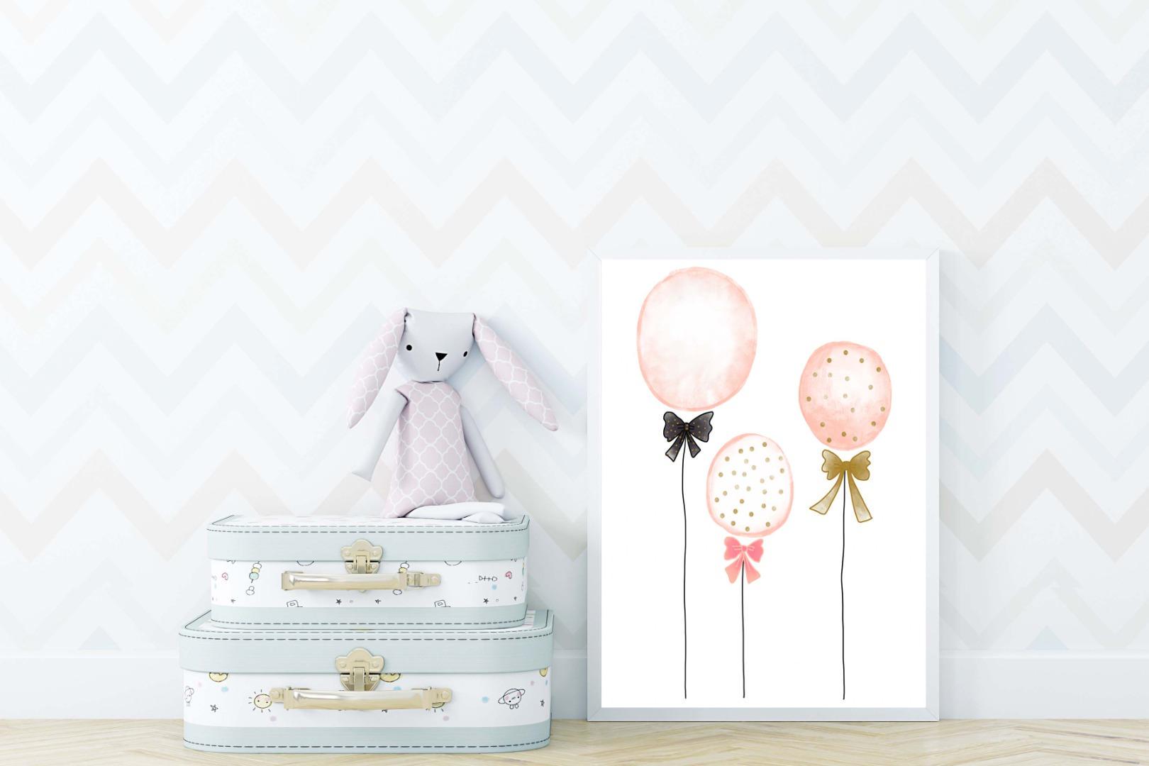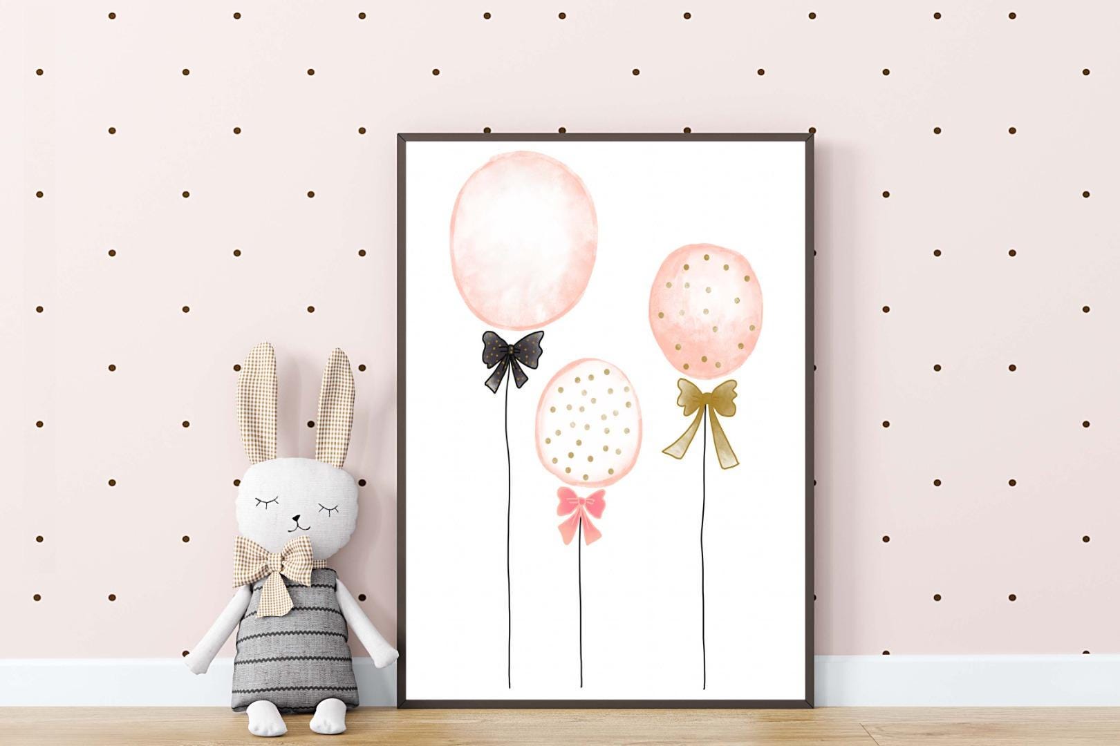 Pink Balloons Girls Boho Watercolour Hand Painted Effect Nursery Wall Art Poster