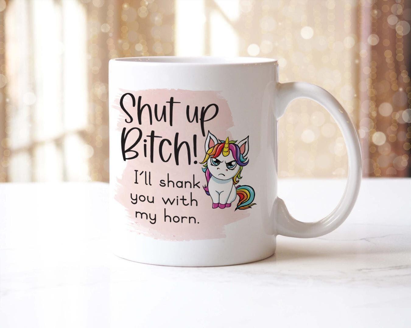 Shut Up Bitch Mug And Coaster Gift Set Funny Unicorn Coffee Cup Birthday Gifts