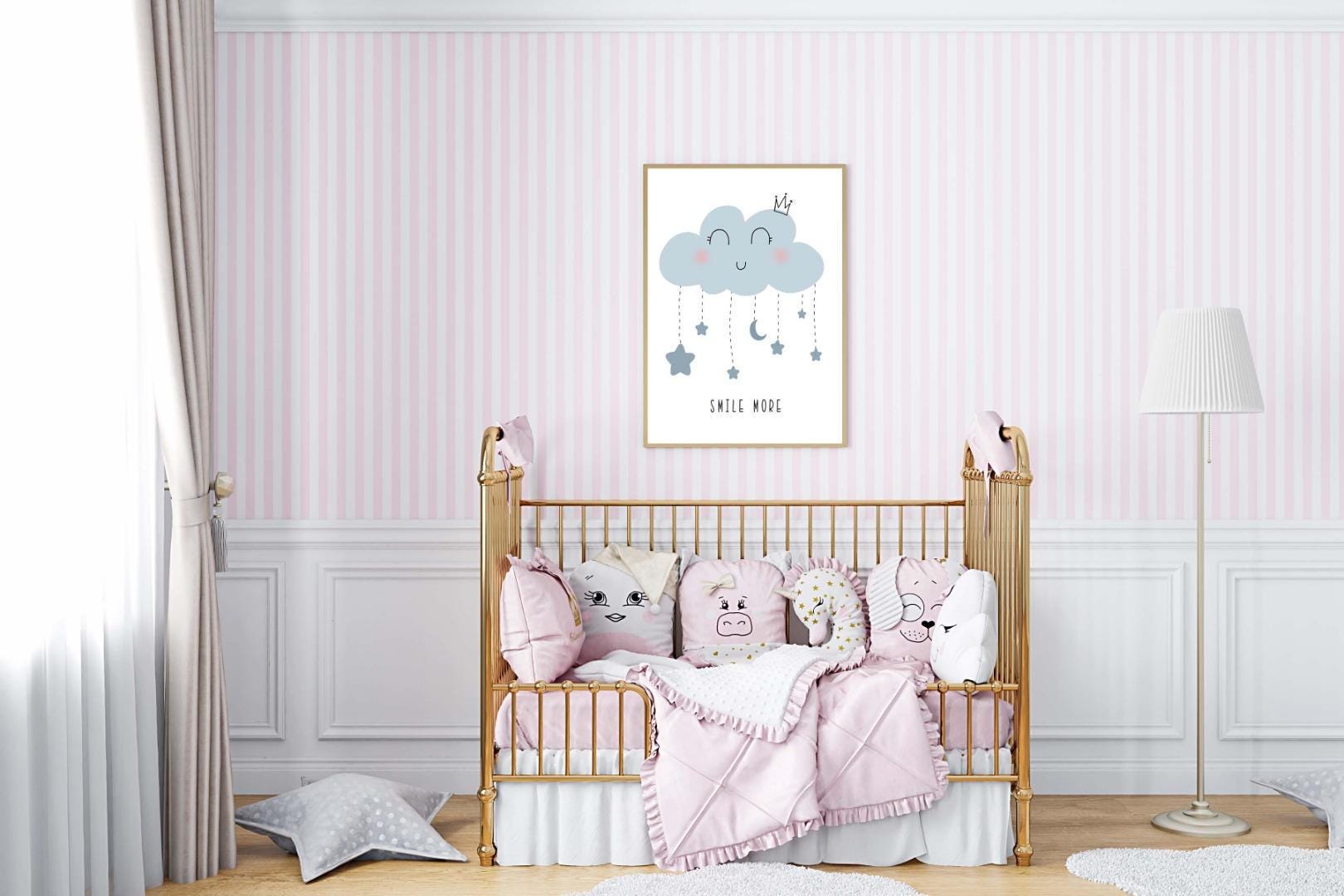 Smile Clouds Girls Boho Watercolour Hand Painted Effect Nursery Wall Art Poster