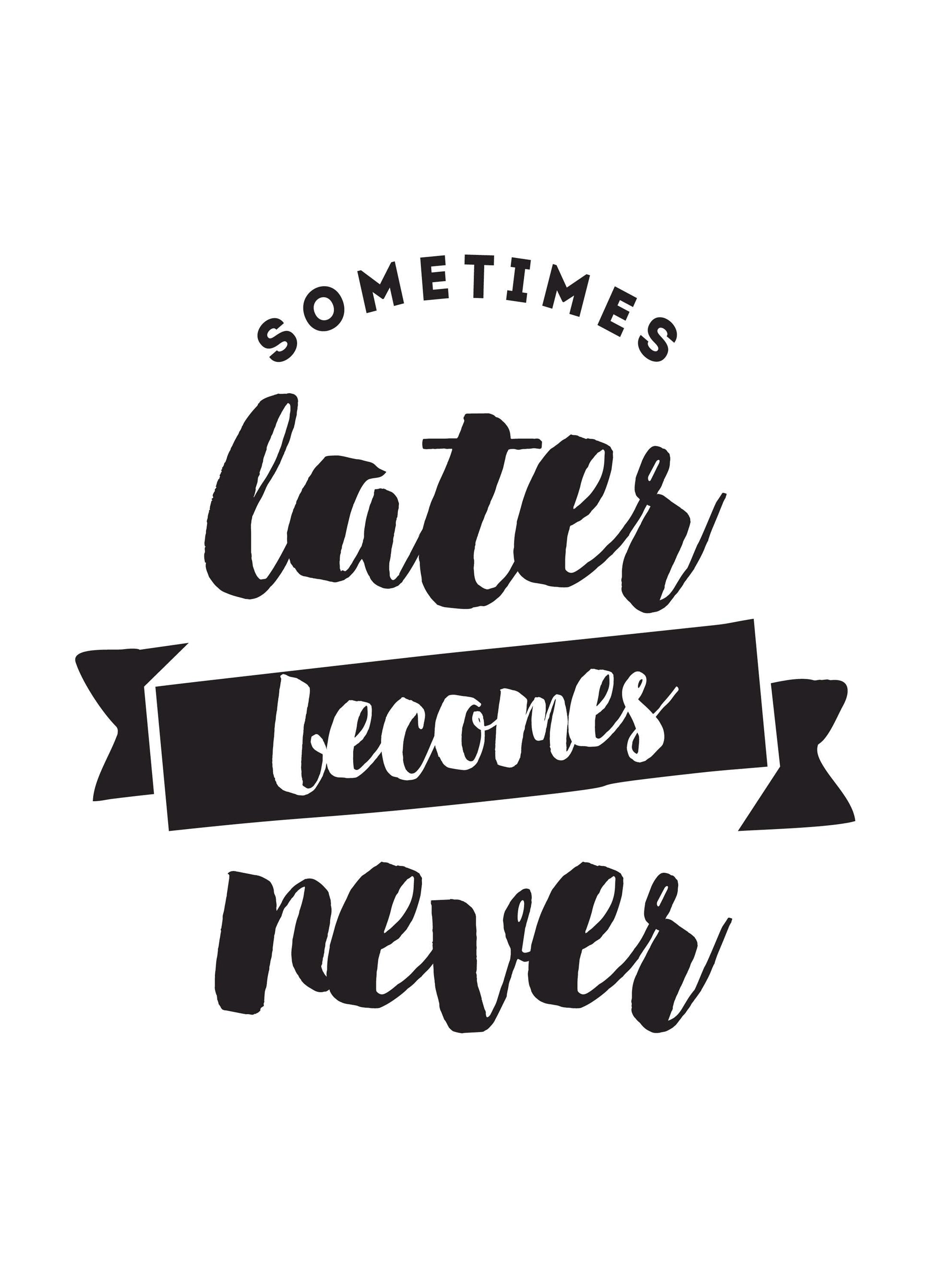 Sometimes Later Becomes Never Inspirational Picture Poster Print Wall