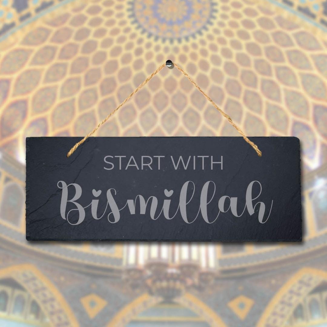Start With Bismillah Engraved Islamic Calligraphy Wall Hanging Slate Plaque Sign