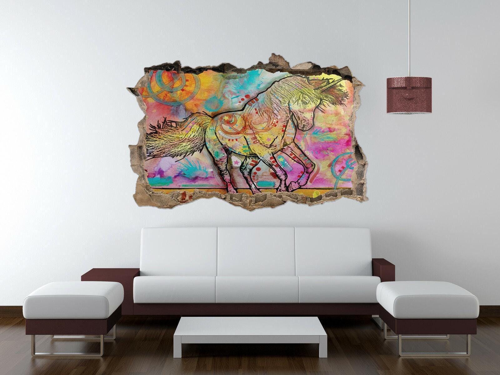 Unicorn Wall Sticker Abstract Painting Fantasy Unicorn 3D Crack View Wall Mural Sticker Girls Bedroom Decal