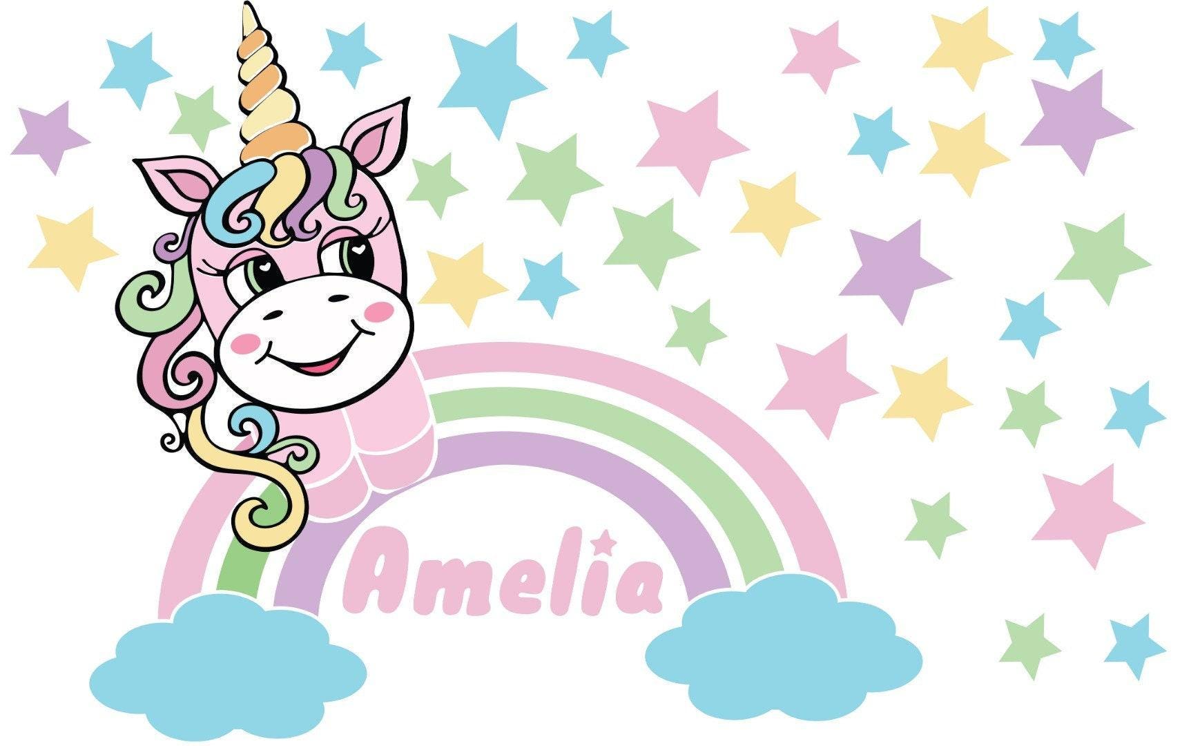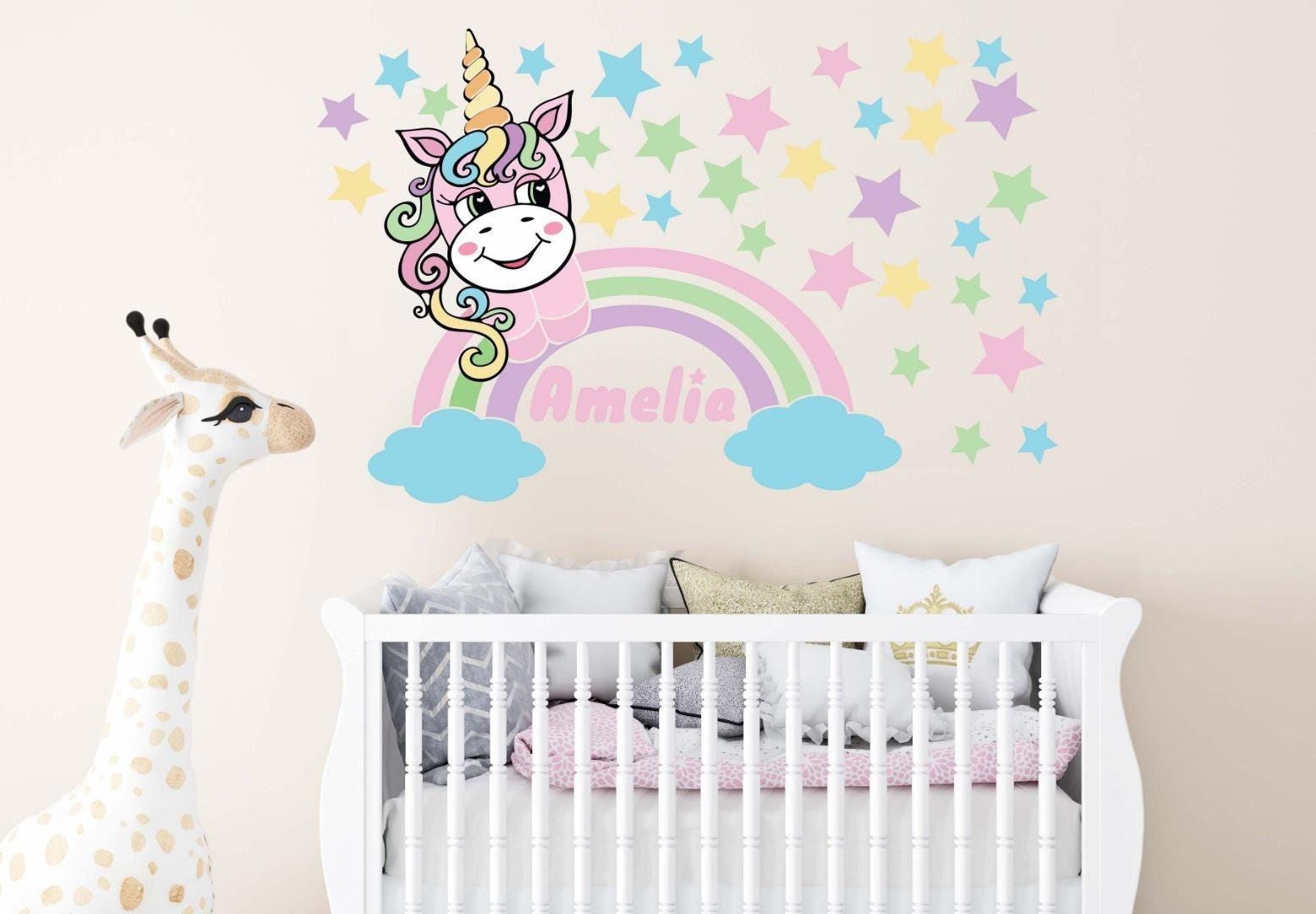 Unicorn Wall Sticker Personalised Name Girls Bedroom Nursery Kids Rainbow Vinyl