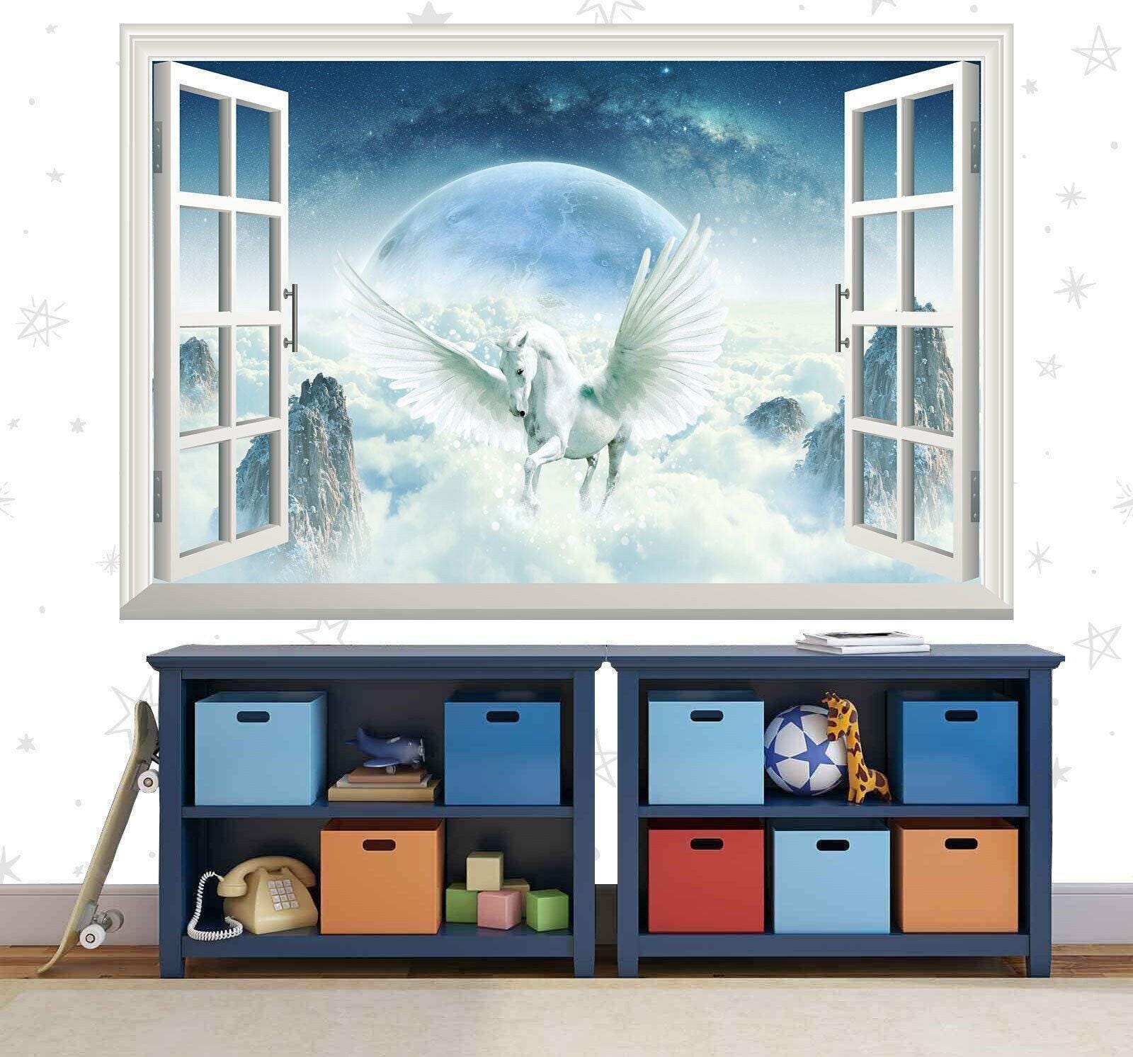 Unicorn Window View Wall Decal: Winged Pony Mural for Girls Room