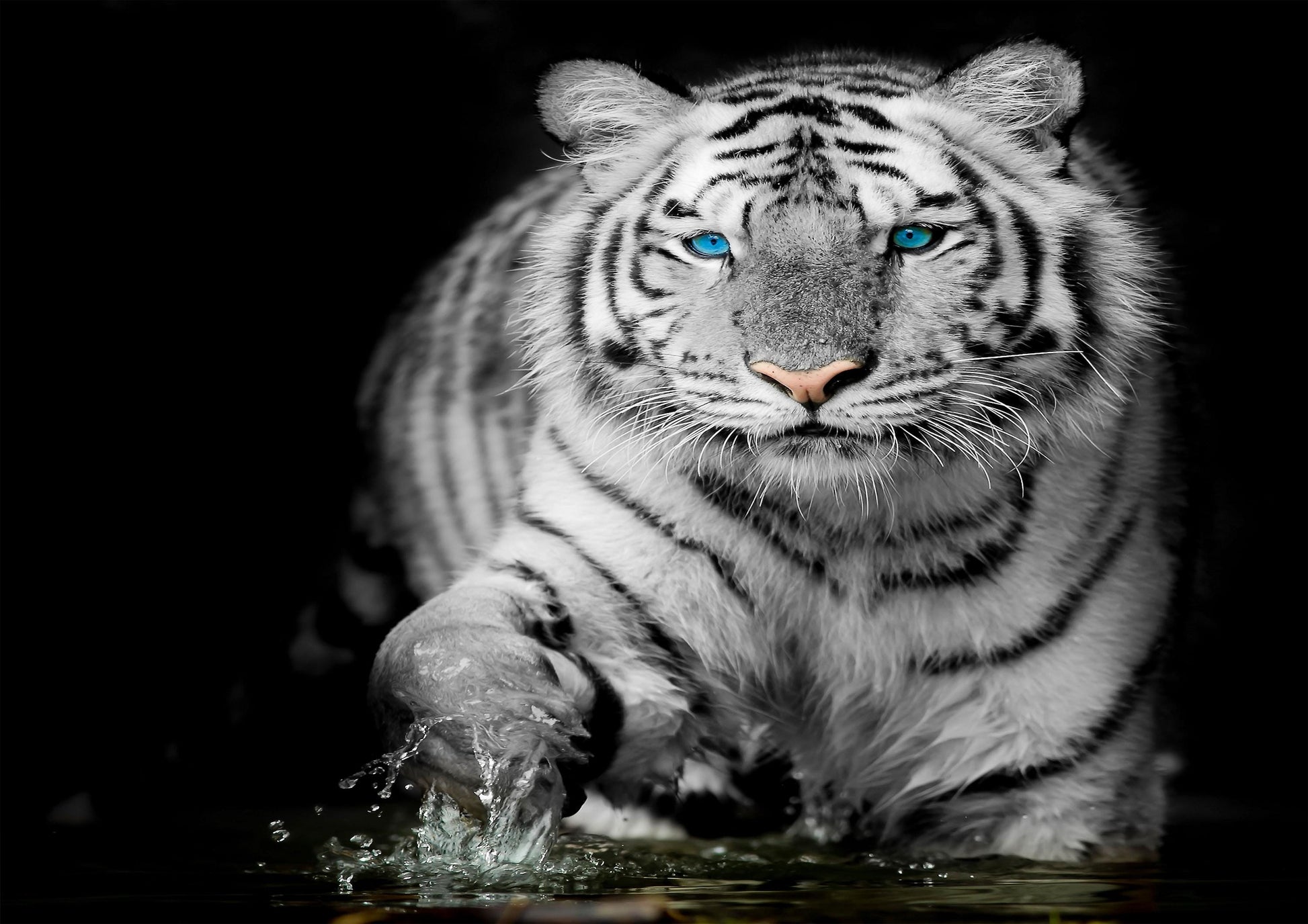White Tiger Blue Eye Stare Nature Wildlife Giant Poster - A4 A3 A2 A1 Sizes